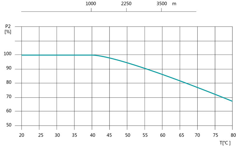 อุณหภูมิโดยรอบสูงสุดเมื่อปั๊มน้ำทำงานในสถานที่ที่อุณหภูมิสูงกว่า40 ℃หรือระดับความสูงที่สูงกว่า 1000m กำลังส่งออกของมอเตอร์ P2 จะลดลงเนื่องจากการระบายความร้อนทำงานไม่ดีที่เกิดจากความหนาแน่นของอากาศต่ำ ดังนั้นในกรณีที่ปั๊มน้ำแบบแนวตั้งควรจะติดตั้งมอเตอร์กำลังสูง